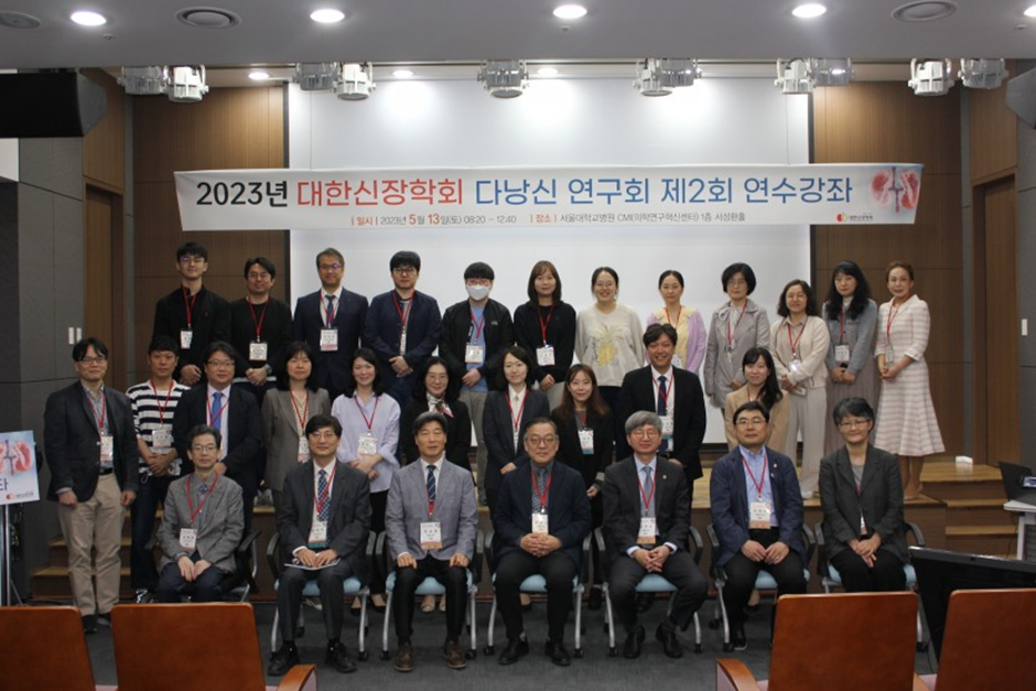 22년 1회 연수강좌는 코로나로 인해서 온라인으로 진행되었지만, 제2회 다낭신 연구회는 23년 5월 13일 서울대학교병원 CMI 서성환홀에서 온·오프라인으로 개최되었습니다. 이번 연수 강좌에서는 다낭신 전문가인 신장내과 교수님들뿐만 아니라 소화기내과, 외과, 비뇨기과, 신경외과 등 다낭신의 합병증 및 extrarenal manifestation에 대한 management에 대한 전문가를 모셨으며, 약 220명이 참여해 주신 가운데 성황리에 진행되었습니다.