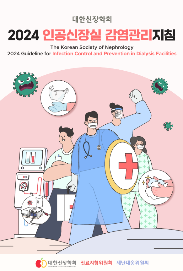 대한신장학회에서는 2015년 메르스 유행 이후 투석 환자들의 감염 위험을 낮추고 체계적인 감염예방과 관리를 위해 2017년 “인공신장실 감염관리지침”을 발간한 바 있다. 이 지침은 현장에서 바로 활용할 수 있는 실제적인 내용을 담고 있었고, 투석 과정의 세밀한 부분까지 언급하고 있어 각 인공신장실에서 활용도가 매우 높았다. 그러나 각 지침 내용의 근거 수준이 높지 않았고, 대부분의 연구가 해외에서 이루어졌다는 아쉬움이 있었다.