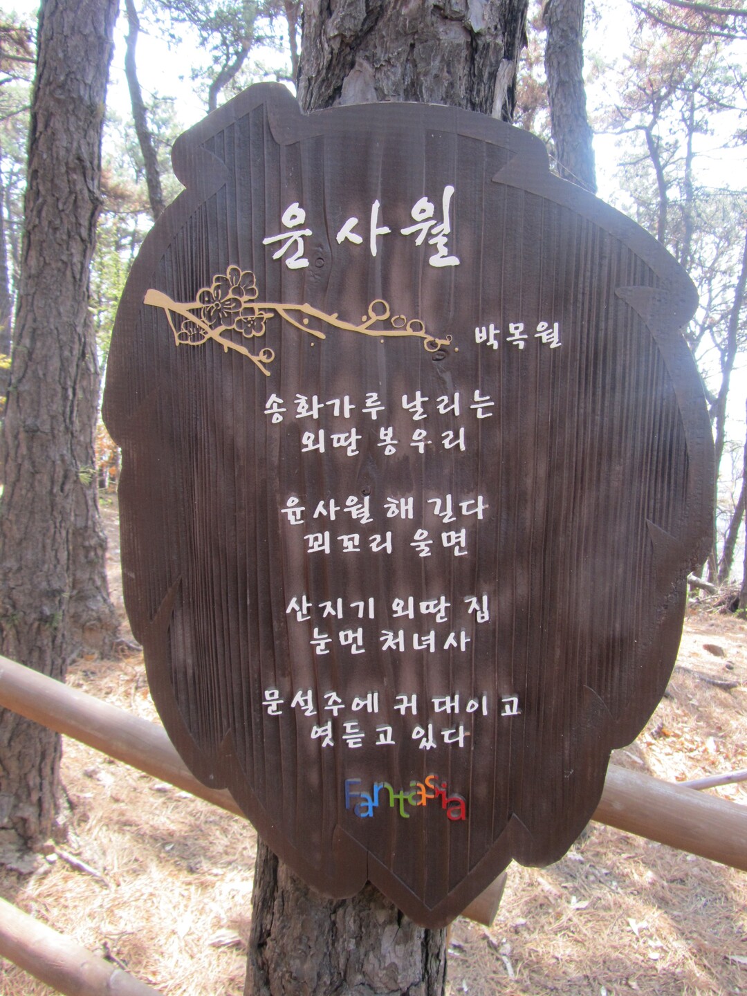 문득 인기 개그 프로그램의 유행어가 떠오른다. “사라진 우리의 봄, 어디 갔어, 어디 갔어.” 불과 수주 전만 해도 쌀쌀하다며 봄이 왜 이리 안 오느냐고 원망했는데, 오늘은 따뜻하다 못해 이른 더위가 느껴진다. 1코스인 향토유적 숲길의 출발점, 소사동 주민센터 옆 나무 계단을 오르니 숲속 곳곳에 나무들이 시를 품고 있다. 저 멀리 배부른 엄마 손을 잡은 꼬마가 엄마보다 한 발짝 앞서 걸으며 기세등등 엄마를 끌고 온다. 그러더니 잠시 쉼터에 앉아서 의미 모를 시를 당황스럽게 바라본다. 당당한 기백이 온데간데없이 사라진 꼬마의 모습이 귀여워 나도 모르게 입가에 미소를 짓는다.