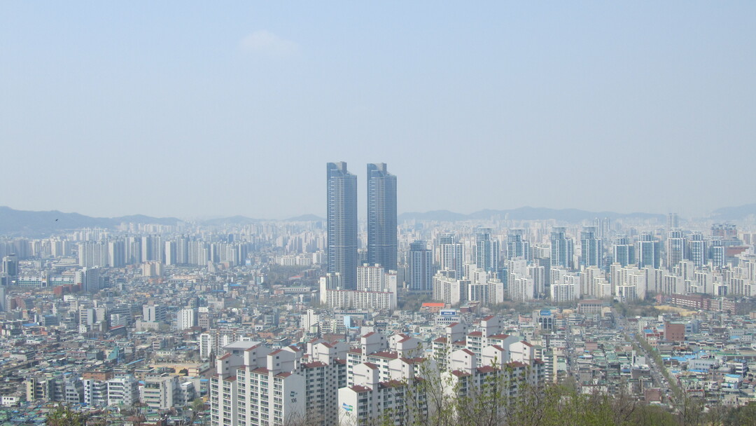 쉼터에서 출발해 원미산 정상에 있는 원미정까지 가는 길엔 고비가 숨어있다. 하지만 이 ‘천국의 계단’만 오르면 전경을 한눈에 바라보는 호사를 누릴 수 있다. 부천의 랜드마크인 쌍둥이 빌딩과 이를 감싸는 빌딩 숲, 그리고 부천 시내를 둘러싼 산들이 어우러져 멋진 작품으로 다가온다. 저 멀리 종합운동장은 진달래와 함께 한 폭의 풍경화처럼 그려진다.