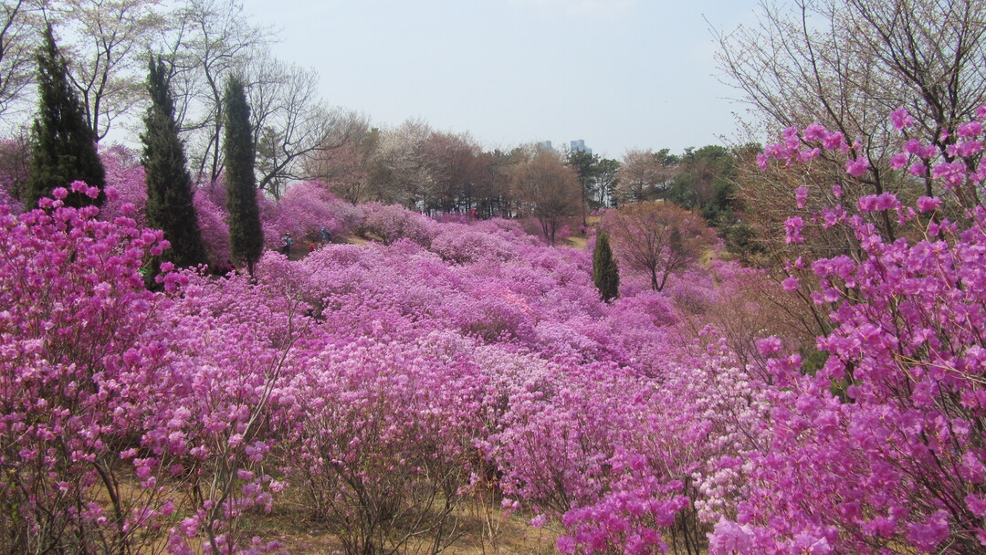 진달래 아래 옹기종기 모여 앉아 간식거리를 먹으며 이야기를 나누는 이들은 모두 행복한 표정을 짓는다. 아이들은 나무 뒤에 숨어 자기를 찾아보라며 숨바꼭질한다. 조금 넓은 공터에는 소풍 나온 어린이들이 둘러앉아 김밥을 먹으며 웃음꽃을 피우고 있다. 우리도 잠시 나무 의자에 앉아 차 한 잔의 여유를 즐겨본다.