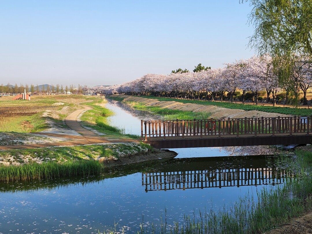 다리를 건너 길을 걷다가 조류관찰대에 도착해, 새들의 모습을 살펴보며 안내판 사진과 맞춰본다. 산책로를 따라 늘어선 버드나무들은 초록 옷으로 갈아입고 사람들을 반긴다. 갯골습지센터를 지나 새들의 발자국을 따라 걸으니 수생식물원이다. 수면에 비친 예쁜 수생식물들을 보고 있는데 어디선가 날아든 나비들이 춤을 춘다. 부흥교 다리를 건너 진분홍빛 꽃잔디와 흔들 전망대를 사진에 담고 벚꽃 터널로 향한다. 쉬엄쉬엄 최종 목적지인 주차장에 도착해 2시간 반의 걷기를 마무리한다.