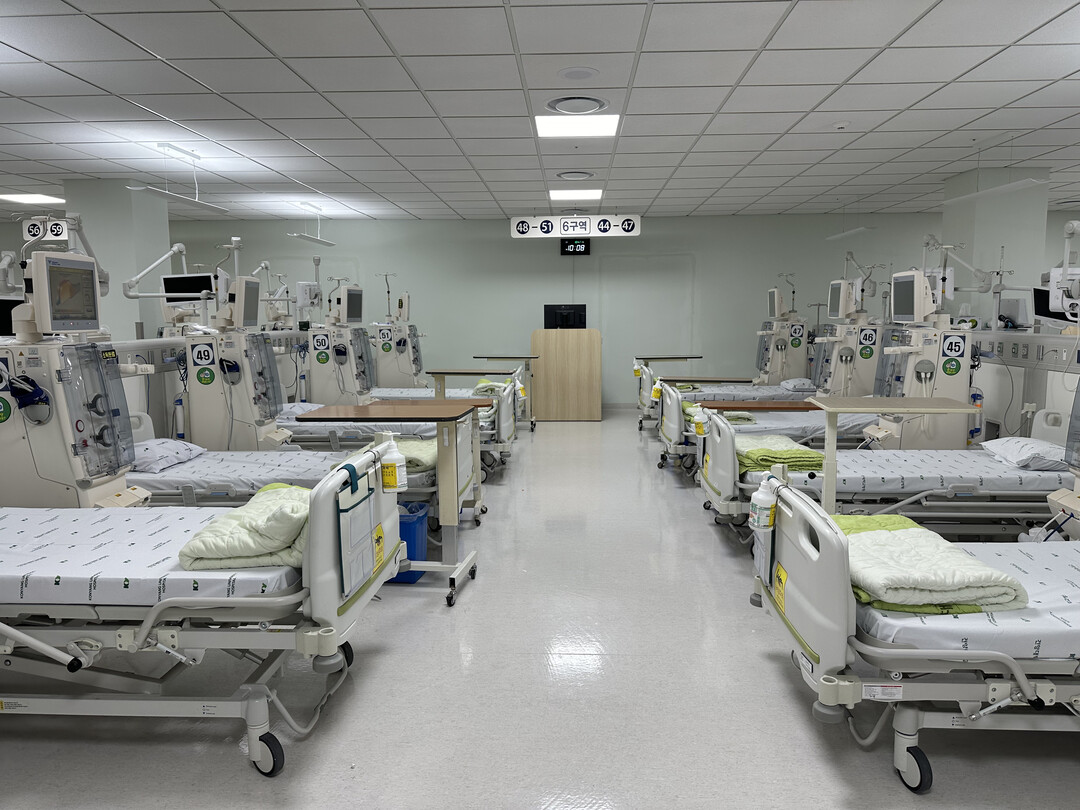 건양대학교병원 신장내과 인공신장실은 새 병원 개원 및 본관 리모델링을 마치고 2023년 11월부터 증축된 인공신장실을 운영하고 있습니다. 약 270평의 공간에서 65대의 혈액투석기계를 운영하며 190여 명의 외래 혈액투석 환자에게 치료를 제공하고 있습니다. 특히 인공신장실의 넓은 공간을 활용하여 환자 침대 사이 간격을 넓혀 혈액투석 환자들이 투석 중 느끼는 불편감을 최소화하고, 쾌적한 환경을 제공하기 위해 노력하고 있습니다. 또한 인공신장실을 여러 구역으로 나누고 의료 인력이 대기할 수 있도록 배치하여, 투석 중 발생할 수 있는 위급 상황에 즉시 대처할 수 있도록 설계하였습니다.