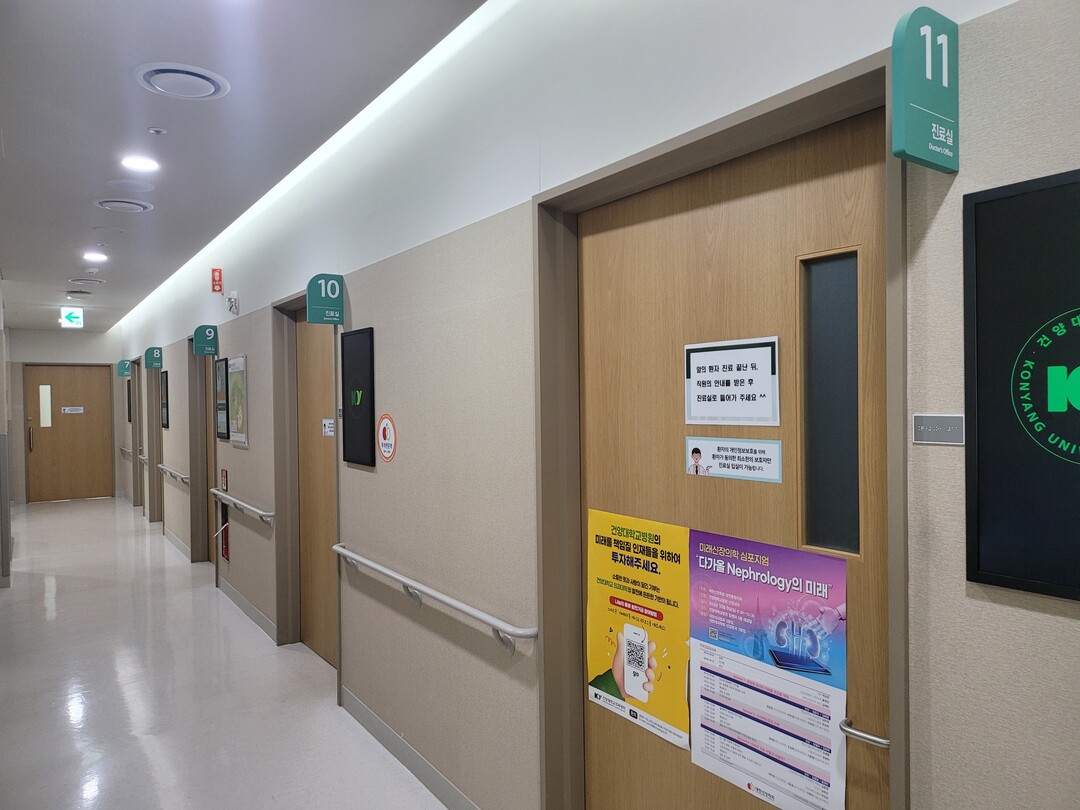 건양대학교병원 신장내과는 현재 리모델링이 완료된 본관에서 총 3개의 외래 진료실, 1개의 복막투석 교육실, 1개의 복막투석실, 인공신장실, 병동 회의실을 운영하고 있습니다.