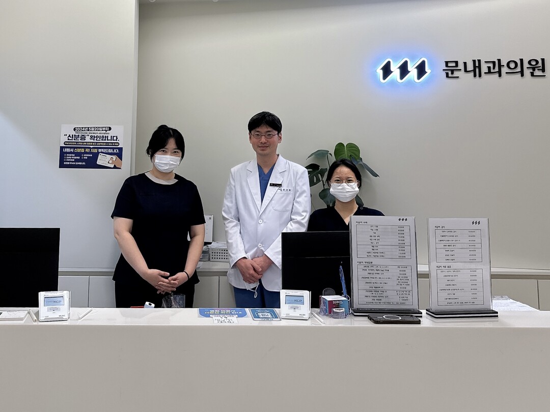 이전 병원에 사표를 낸 후 남은 근무기간에도 진료 후 매일 공사 현장을 방문해 진행사항을 점검했습니다. 병원명도 여러 후보 중 고민하다가 심플하지만 무게감 있고, 진정성이 느껴지는 ‘문내과’로 정했습니다. 그리고 멋진 로고를 만들어 간판을 붙이게 되었습니다.
