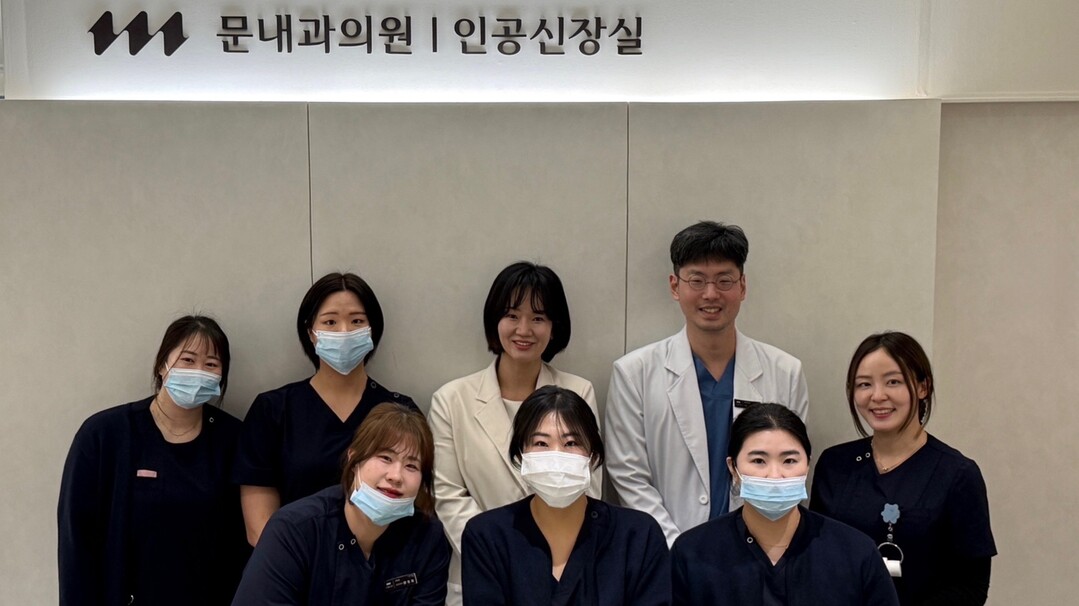2024년 4월 중순, 기존 병원에서 저를 믿고 따라와 주신 10명의 환자분들과 함께 첫 투석을 시작하며 문내과는 첫발을 내디뎠습니다. 이후 적응 기간을 거쳐 5월 초 정식 개원하였고, 초반에는 투석환자보다 간호사 수가 더 많은 어색한 상황도 있었습니다. 그러나 점차 환자 수가 늘어, 개원 9개월 차인 현재는 정규 투석환자 40명, 관광 투석 평균 5건, 월 투석 건수 500건 이상을 기록하며 많이 성장한 상태입니다.