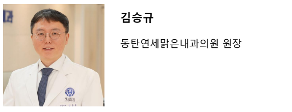 안녕하세요? 동탄연세맑은내과 원장 김승규입니다. 저는 강남세브란스병원에서 인턴, 전공의, 신장내과 전임의를 마치고 전라남도 해남군에 위치한 해남 우리 종합병원에서 7년간 봉직의로 근무하였습니다. 이후 2024년 3월, 경기도 화성시 동탄에서 동탄연세맑은내과를 개원하게 되었습니다.