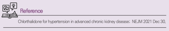 "CLICK 연구를 통한 만성콩팥병 4단계 환자에서도 Chlorthalidone을 사용하여 혈압을 유의하게 낮출 수 있음을 확인할 수 있었다. 여러가지 장기 합병증의 호전에 효과가 있을 수 있음을 시사한다."
