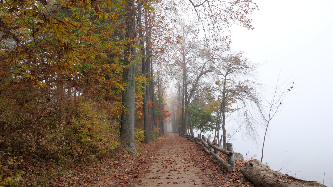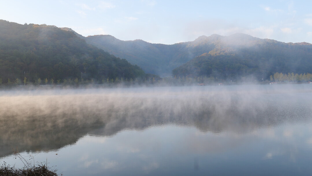 새벽 물안개와 멋진 은행나무 단풍이 어우러진 문광저수지 둘레길