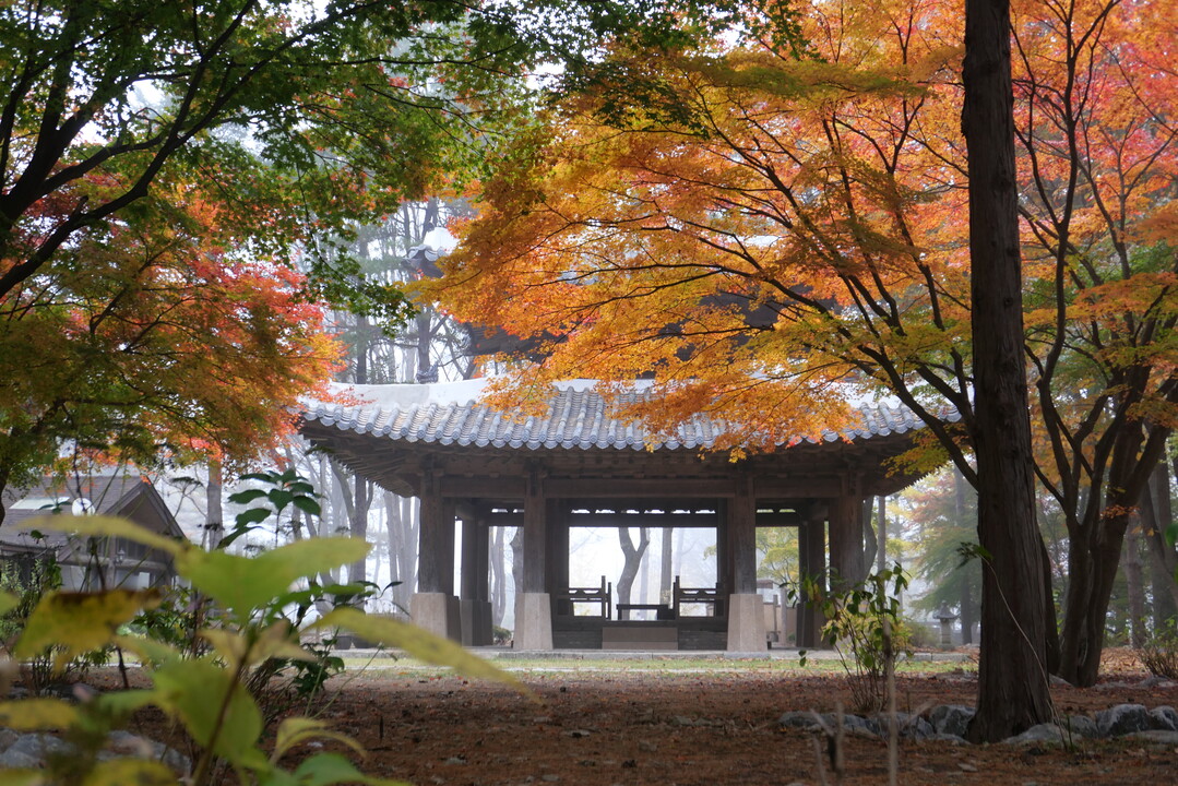잠시 풍경을 감상하고 길게 늘어선 은행나무들의 호위를 받으며 주차장으로 발걸음을 옮긴다. 순대집에서 맛있는 아침과 함께 50여 분의 짧지만, 행복한 단풍길 나들이를 마무리한다.