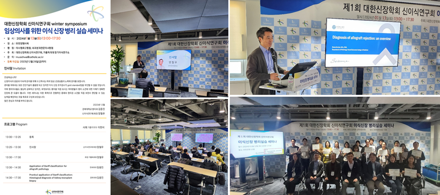 또한 2023년부터는 매월 첫 주 수요일에 실제 경험한 임상 증례의 공유를 통해 젊은 이식의들이 간접적으로 임상 경험을 쌓을 수 있도록 온라인 증례 컨퍼런스를 개최하고 있으며, 2024년에는 이식 공부를 시작하는 젊은 이식의들의 참여와 관심을 높이기 위해 병리 실습 세미나를 개최하였습니다.