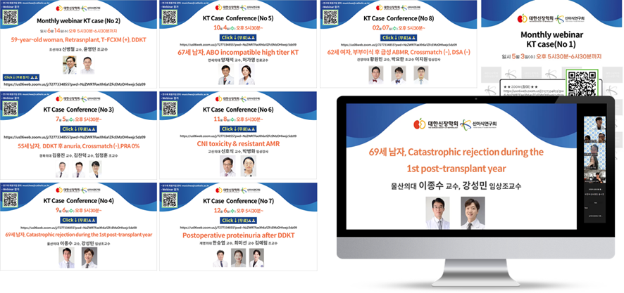기존 정기 학술대회가 다양한 분야 연구자들의 참여와 함께 대규모 학술 교류의 장으로 확대됨에 따라 젊은 이식의들의 참여를 독려하고 경험을 공유하기 위해 “흥미로운 임상 증례” 세션을 분리하여 2023년 5월 4일 제1회 온라인 신장이식 증례 컨퍼런스를 개최하였고 첫 컨퍼런스였음에도 불구하고 동시 접속자 수가 80여 명에 이를 정도로 성황리에 진행되었습니다. 이후 매월 또는 격월로 첫 주 수요일에 컨퍼런스를 개최하여, 2024년 2월까지 총 8회의 증례 컨퍼런스를 개최하였습니다.