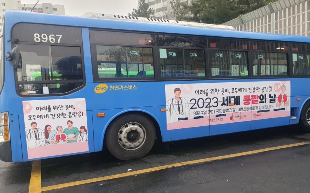 이 밖에도 더 많은 일반인들에게 콩팥 건강의 중요성과 대한신장학회의 역할을 홍보하기 위해 처음으로 시내버스 광고를 진행하였습니다. 시내버스 광고를 시작하고 몇몇 홍보위원님들이 출근길에 우연히 마주한 버스 광고를 사진으로 찍어 공유해 주었는데, 처음 기획하였을 때의 막연함과 달리 실제 운행되는 세계 콩팥의 날 홍보 버스를 보니 실로 어깨가 으쓱하며 적지 않은 성취감이 느껴졌습니다(사진 5).