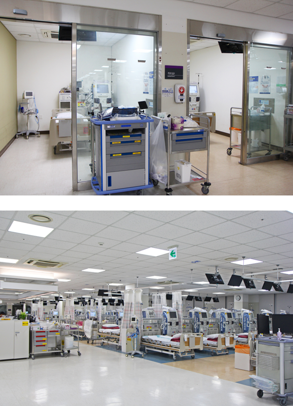 또한, 2021년에는 대한신장학회의 ‘우수 인공 신장실’ 인증을 획득하였습니다. 중환자실에서는 급성 신 손상 환자의 치료를 위하여 총 7대의 지속적 신대체요법(CRRT) 기기를 사용하고 있습니다.