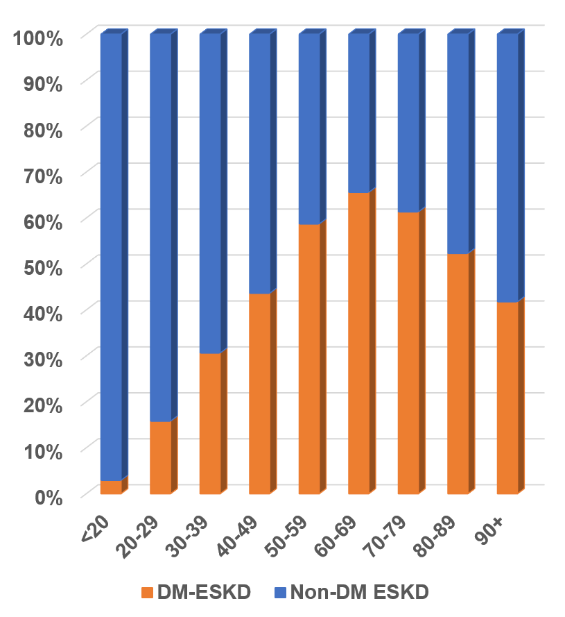당뇨는 신대체요법이 필요한 말기신부전의 원인 질환 가운데 가장 흔하고 위중한 질환이다. 대한신장학회 등록위원회에서 매년 보고하는 말기신부전 환자 등록 사업 자료를 이용한 우리나라 신대체요법 현황 보고서에 의하면 당뇨는 약 50%의 말기신부전 환자에서 원인 질환으로 생각되고 있으며, 이러한 현황은 2011년 이후 큰 변화 없이 유지되고 있다.