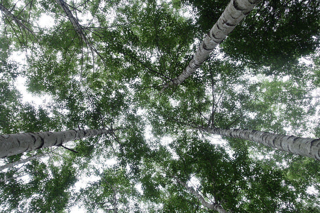 오솔길을 따라 걸으니 멀리 보이기 시작하는 은빛 자작나무들이 열을 맞춰 일렬로 늘어서 손 흔들며 빨리 오라고 한다. '당신을 기다립니다'라는 꽃말처럼 우리가 오기를 애절히 기다려 준 느낌이다. 자작나무는 껍질이 종이처럼 하얗게 벗겨지고 얇아서 여기에 연인끼리 사랑의 글을 썼던 낭만적인 나무다. 기름기가 풍부한 껍질은 불이 잘 붙어 불쏘시개로 유용하게 쓰였으며 나무의 이름도 ‘자작자작’ 소리를 내며 탄다고 해서 붙여진 이름이다.