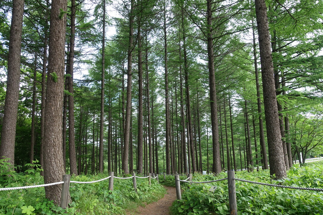 습한 느낌에 우비를 벗고 우산을 쓰고 임도를 따라 오르는데, 어디선가 아주 익숙한 목소리로 내 이름을 부른다. 대학 동창 친구가 부인과 함께 여행사 코스로 와서 벌써 숲을 둘러보고 내려가는 중이다. 친구와 안부 인사 후 한 걸음 한 걸음 오르면서 보니 길 위 언덕으로 자작나무들이 하나둘씩 보이며 숲이 가까워졌음을 알려준다. 왼쪽으로 작은 갈림길이 나타나고 이곳이 바로 자작나무 진입코스의 시작점이다.