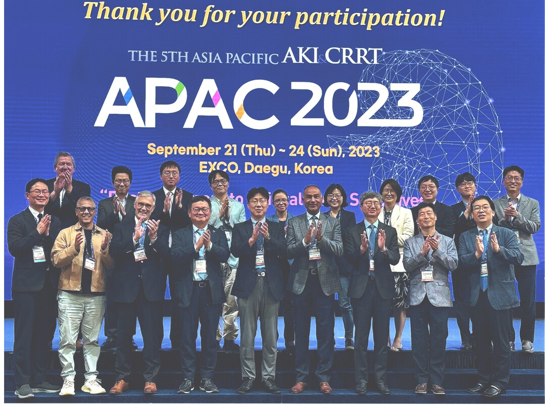 학술대회를 개최하며 무엇보다 짧은 임기 동안 두 개의 국제학술 대회가 개최된 점이 큰 영광이며 기억에 남습니다. The 5th Asia Pacific Acute Kidney Injury & Continuous Renal Replacement Therapy Congress (APAC 2023)가 “Best Movement to Critical Care, Save Lives”라는 슬로건 하에 2023년 9월 21일부터 24일까지 대구 엑스코에서 개최되었습니다. COVID-19로 인해 3년 만에 대면으로 개최되었음에도 불구하고 27개국에서 740명이 참석하여 성황을 거두었습니다.