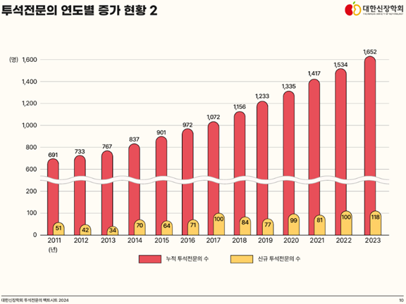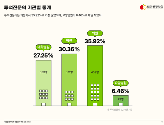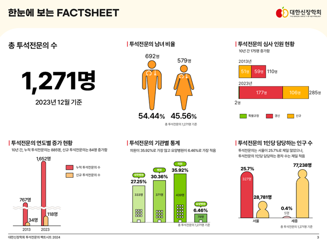 ‘대한신장학회 투석전문의 Factsheet 2024’는 대한신장학회에서 중점적으로 시행하고 있는 투석전문의의 현황을 확인하고, 앞으로 방향성을 결정하는데 중요한 기초자료로 활용될 것으로 기대됩니다.
