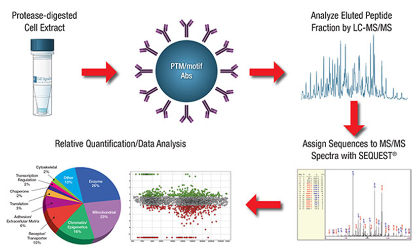 Phosphoproteome은 최근 Cell Signalig Technology사가 개발한 PTM Scan kit를 사용하면 손쉽게 조직이나 세포주에서 각 pathway에 해당하는 인산회, 아세틸화 및 Ubiquitinated peptide들을 IP하여 전처리할 수 있다. 해당 PTM proteome은 정상적인 분석뿐만 아니라 정량적인 분석도 가능하여 신약 개발과 기전 연구 등 다양한 중개 연구에 활용할 수 있다.