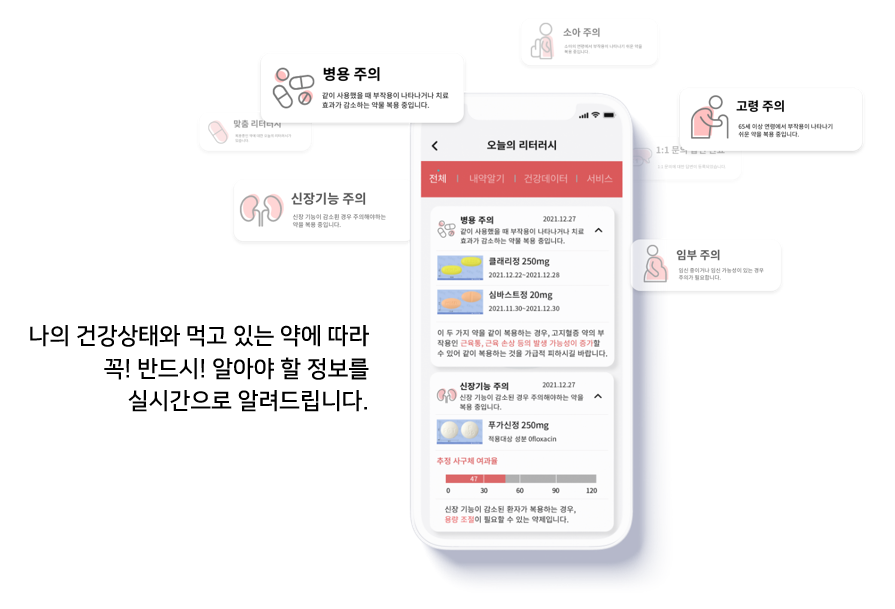 또한 환자가 동의하면 약물 사용이나 검사결과의 이상 소견에 대한 리터러시를 제공하며 특히 개인에 도움이 될 수 있는 맞춤 유튜브 동영상을 추천해드립니다. 물론 병원 진료 시 의사는 환자의 약물 사용력이나 검사 결과를 확인할 수 있습니다. 리터러시-M 서비스는 금년 3월 중순부터 앱으로 공개예정입니다.