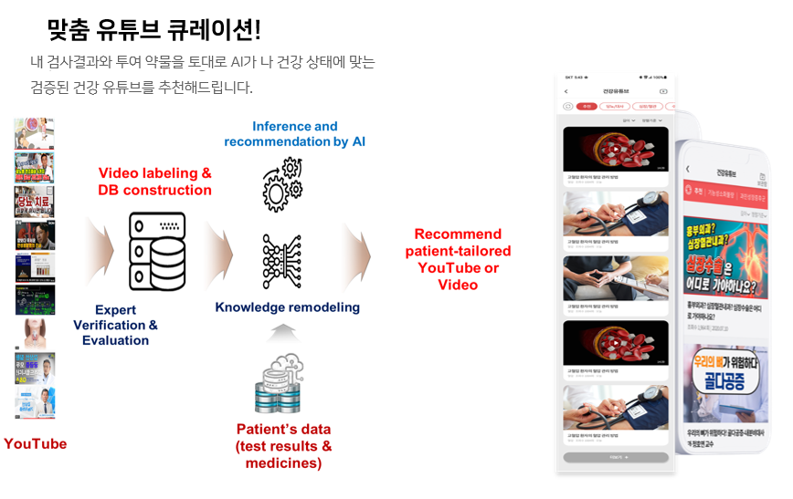 올바른 정보의 콘텐츠를 평가시스템에 기반하여 플랫폼을 통해 추천하고, 추천된 콘텐츠들을 전문가가 큐레이션 할 수 있도록 하여 환자에게 올바른 의료 콘텐츠를 제공하고자 합니다. 여기에 환자의 건강상태에 따른 맞춤 유튜브 큐레이션을 제공하기 위해 '개인건강기록 기반 맞춤 의료정보 제공'이라는 해결 방안을 찾게 된 것입니다. 의료 리터러시에 대한 문제 인식 그리고 환자 맞춤 의료정보 제공이라는 해결 방안을 의료 현장에서 구현하고 싶은 열망이 제가 회사를 설립한 이유입니다.