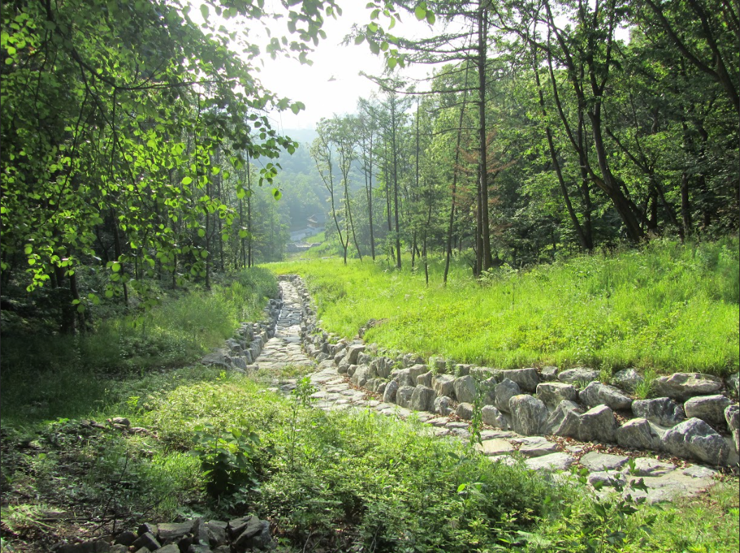 갈림길에서 남태령 능선 방향으로 방향을 틀어 오솔길로 들어서니 주변에 많은 군사 시설들이 나타난다. 일부는 주민들이 쉬기 편하게 나무판으로 덮어 놓아 쉼터를 만들었는데 고개의 이름도 요새고개다. 다음 갈림길부터는 약수터길로 향하는데 성산약수터를 시작으로 여러 약수터가 이어진다. 길가의 밤나무에는 하얀 꽃이 만개하여 푸른 하늘로 날아갈 듯하다. 하늘에 오르지 못하고 길에 떨어진 꽃송이들은 흙에 묻혀 자연산 판화 작품을 만든다. 다른 편 나무에는 예쁜 버찌 열매들이 검붉게 익어가고 있다. 버찌를 보니 어렸을 때 동네 개구쟁이들과 함께 맛있다며 열심히 따먹은 생각이 떠오른다.