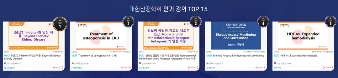 KSN e-Learning Platform이 모든 신장내과 회원을 위한 배움의 공간으로 자리매김할 수 있도록, 앞으로도 더 풍성한 콘텐츠를 지속적으로 업데이트하고 제공하겠습니다.