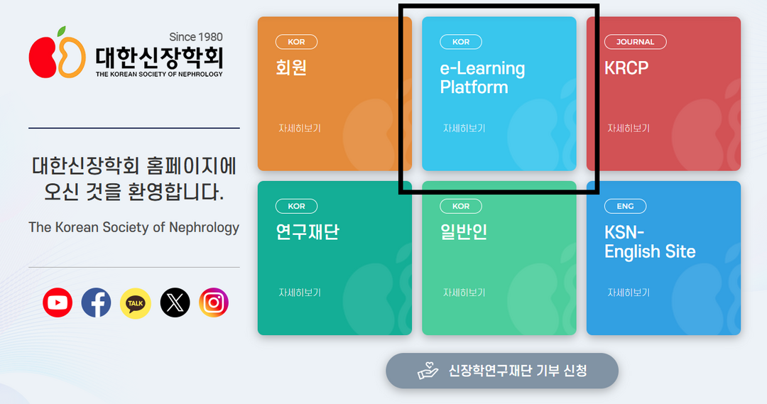 의학지식은 빠르게 진화하고, 신장학 분야 역시 최신 진료지침과 연구 결과에 대한 꾸준한 업데이트가 필수가 되었습니다. 이러한 변화 속에서 대한신장학회는 회원들이 시간과 장소의 제약 없이 최신 지견을 학습할 수 있도록 ‘KSN e-Learning Platform’을 운영하고 있습니다.