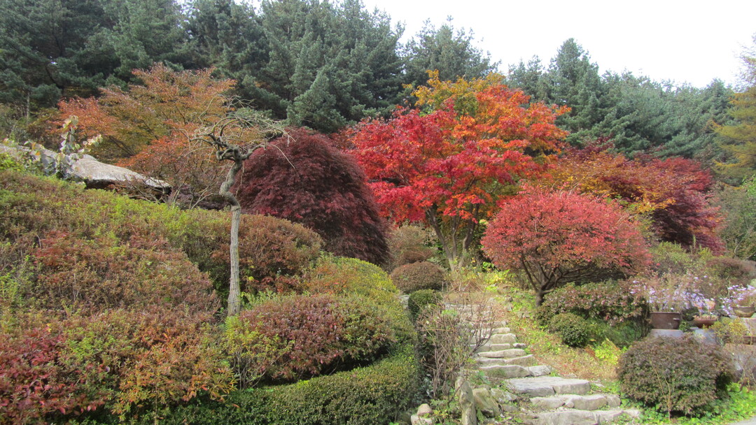 분재정원의 화분 속에는 또 다른 작지만 색다른 세계가 녹아 있고, 무궁화동산의 계단으로는 단풍 폭포가 흐르고 있다. 이곳저곳 정원의 아름다움을 놓치지 않고 감상하면서 3시간의 단풍 나들이를 마감한다.