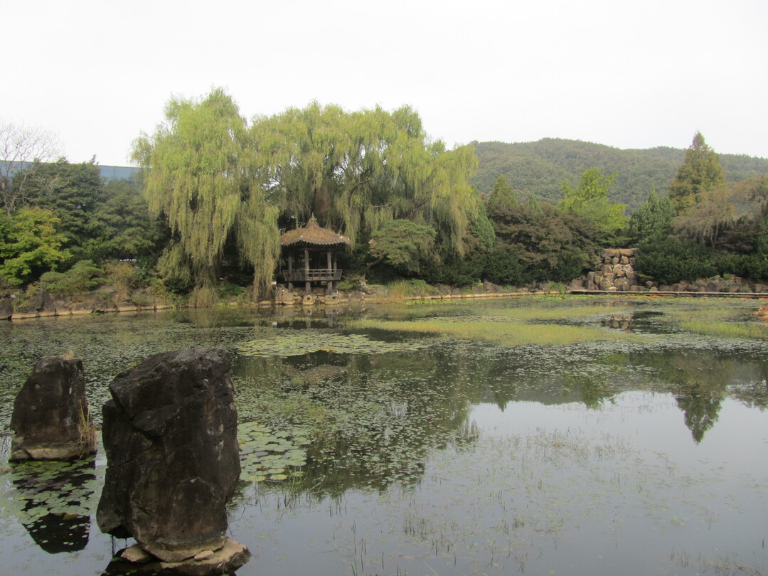 물 위에 비친 형형색색의 가을 풍경의 모습은 한 폭의 아름다운 수채화다. 입구 쪽에 다다르니 축축 늘어지는 나무들로 만들어진 능수정원이다. 수양 단풍나무의 제각각 조금씩 다른 단풍색이 함께 어우러진 모습에 나도 모르게 감탄이 나온다.