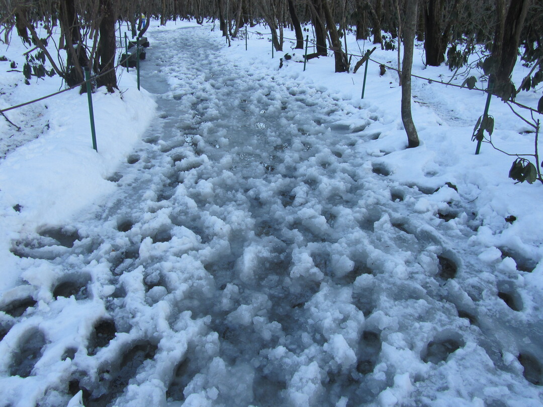 하얀 눈 세상으로 바뀐 한겨울에 독야청청 푸른 잎을 자랑하며 사는 굴거리 나무들이 인상 깊다. 따뜻한 지역에 살았던 활엽수가 1,200m 넘는 고산지대에 적응해 사는 것이 신비하다. 아무도 밟지 않은 눈 위에 여기저기 노루 발자국들과 까마귀 발자국들이 눈에 띈다.
