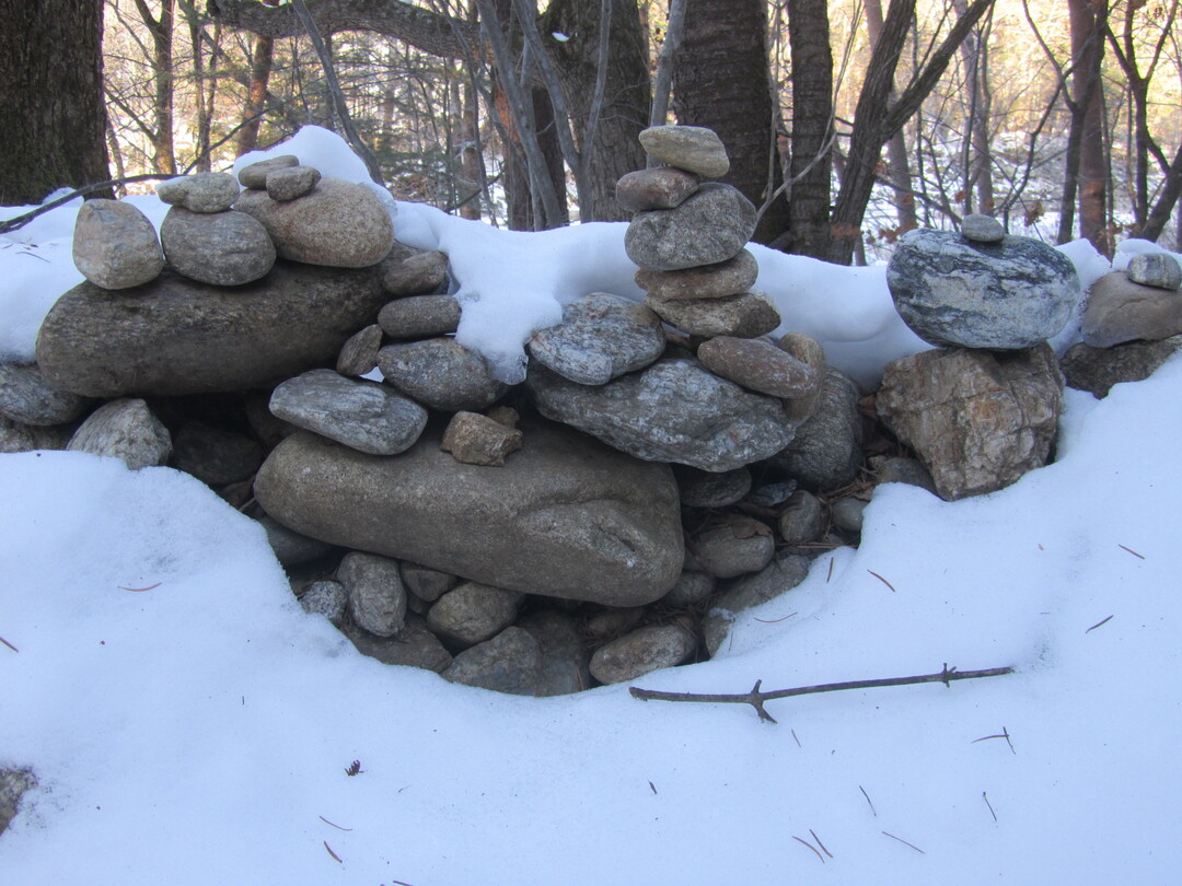 길가에 누군가 소원을 빌며 쌓아놓은 돌탑들도 하얀 눈을 헤치고 나와 자신들의 존재를 알린다. 이곳에서 가장 오래된 수령 600년의 전나무가 태풍으로 40m 넘는 몸체가 꺾이고 남은 밑동은 어른 2명이 들어갈 수 있을 정도로 거대하다. 쓰러져서도 이곳을 찾아온 방문객들에게 볼거리와 함께 사진 모델로서 충실한 역할을 다하고 있다.