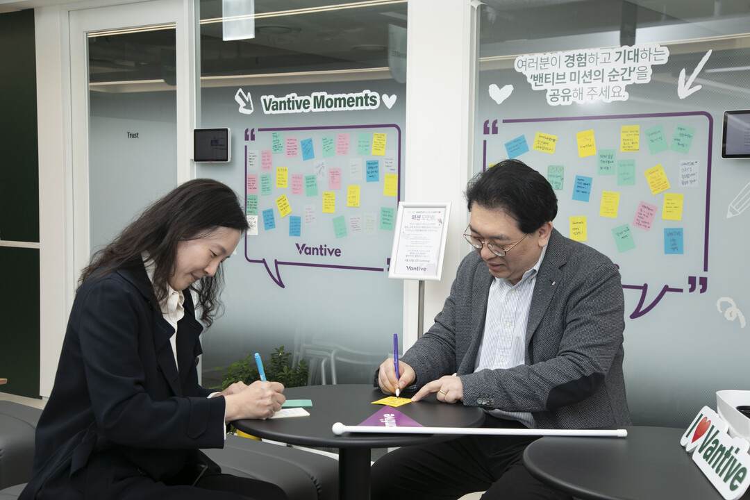 또한, 직원들의 정서적 안정과 업무 몰입도를 높이기 위해 ‘밴티브 행복 찾기 서비스’라는 전문가 상담 프로그램(Employee Assistance Program)을 운영하고 있습니다. 이 프로그램은 직무 스트레스, 대인관계, 가정 문제, 재무 및 법률 상담 등 다양한 분야에서 전문가의 지원을 받을 수 있으며, 직원뿐만 아니라 직계 가족도 무료로 상담을 이용할 수 있습니다. 이 외에도 밴티브코리아는 직원들의 성장과 복지를 위한 다양한 복리후생 프로그램을 운영하며, 직원들에게 더 나은 케어를 제공하고 있습니다.