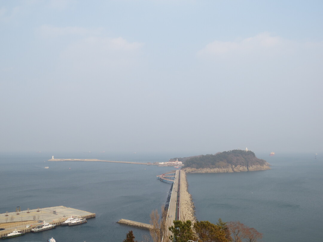 대신 오동도의 명물인 하얀 등대전망대가 우리를 반겨준다. 엘리베이터로 올라가서 천천히 전망대를 한 바퀴 돌며 오동도 주변의 바다 풍광을 맘껏 음미한다. 흐린 날씨 탓에 선명하지 않지만 멀리 보이는 거북선대교를 사진에 담아 추억으로 남긴다.