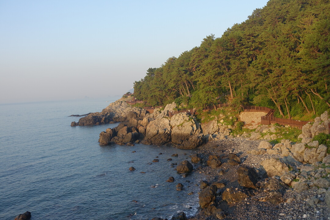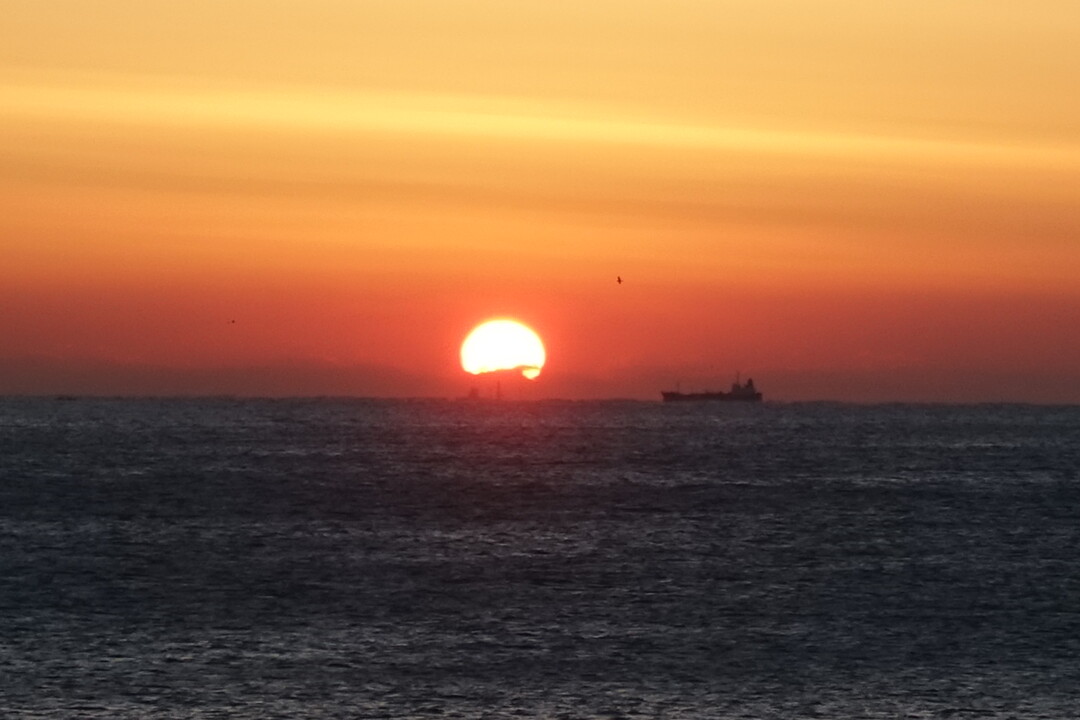 전망대 너머로 붉게 물든 하늘이 훤해지더니 해님이 고개를 살며시 내밀기 시작한다. 약속이라도 한 듯이 시간을 맞춰 해님 옆을 지나는 배는 멋진 모델이 되어준다. 수평선을 벗어나 동그란 모양으로 완전체를 갖춘 태양은 바다 위에 붉은 기운을 쏟아내며 하늘로 향한다. 해님으로 이어지는 바다 위 붉은 그림자는 마치 미지의 세계로 향하는 신비한 고속도로 느낌이다.