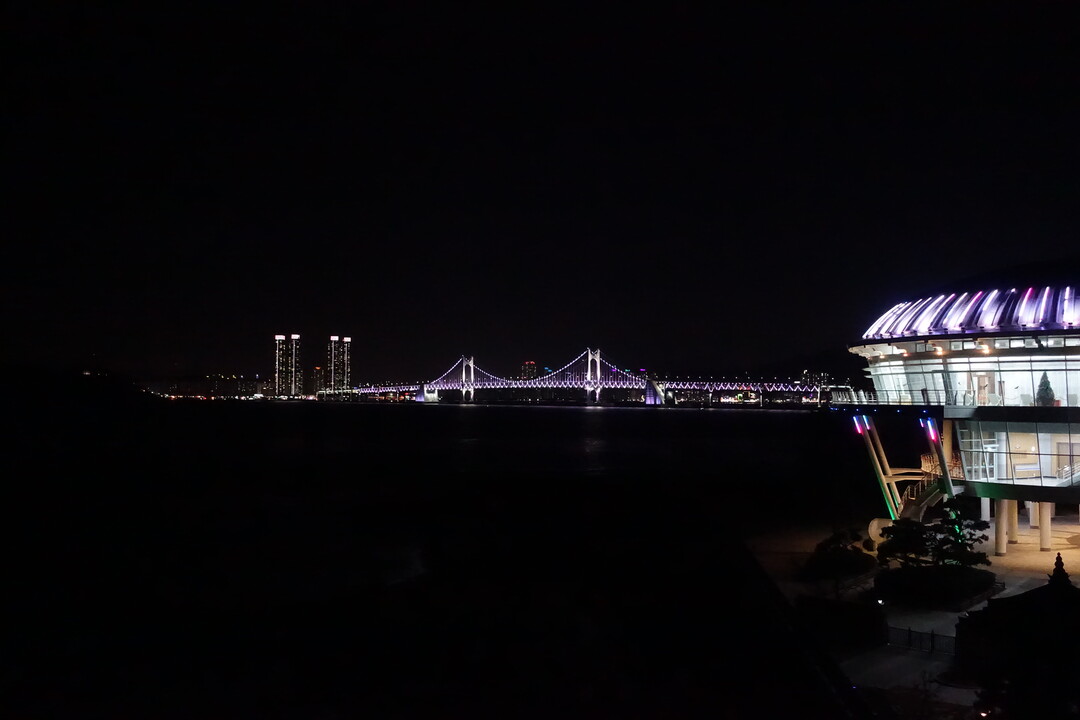 삼삼오오 짝을 이뤄 재미있는 이야기를 나누며 걷는 사람들과 데이트를 즐기는 커플까지 사람들로 가득하다. 전망대에 다다르자 바다 너머 화려한 불빛으로 장식한 광안대교의 야경이 눈길을 사로잡는다. 바로 옆 누리마루 하우스도 이에 질세라 화려한 모습으로 우리에게 다가온다.