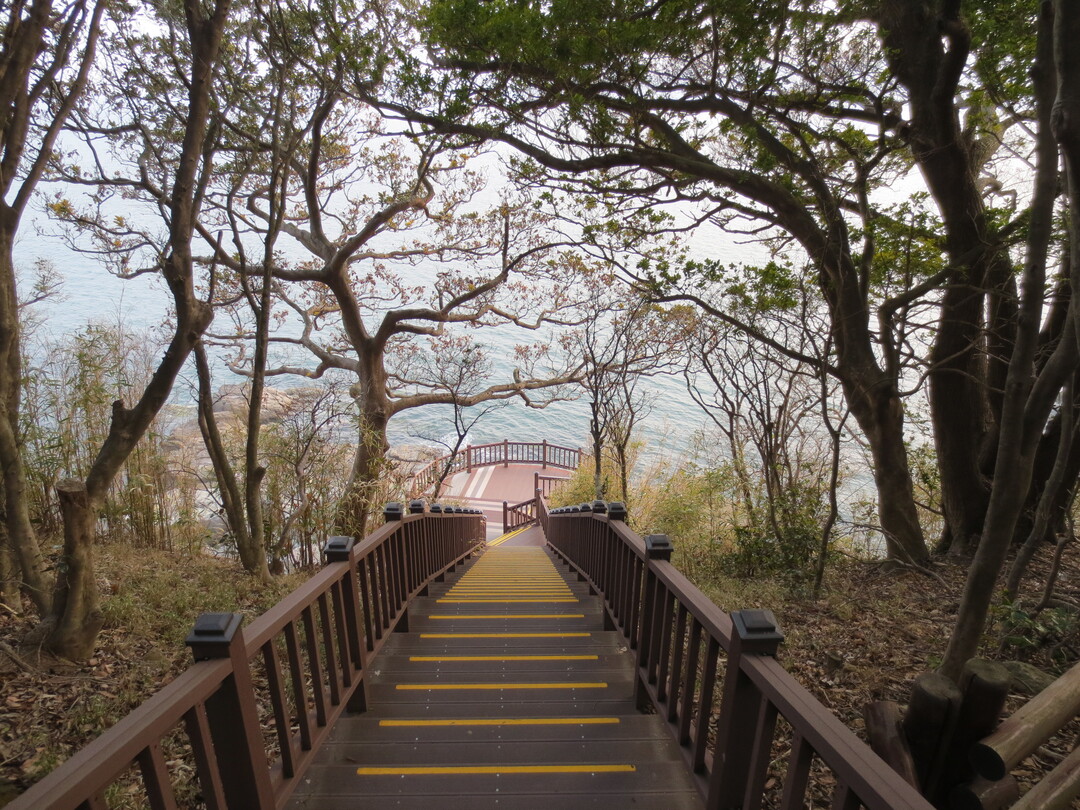 터널을 빠져나와 동백나무 군락지에서 붉게 피어난 동백꽃들을 모델 삼아 사진에 담고 황토길을 따라 남근목으로 향한다. 붙여진 이름을 연상시키는 후박나무 줄기가 모습을 감추려는 듯 조심스레 서 있다. 갯바위를 둘러보고 황토길을 따라 광장으로 내려와 거북선과 판옥선의 자랑스러운 모습과 함께 오동도 동백꽃 여정을 마무리한다.
