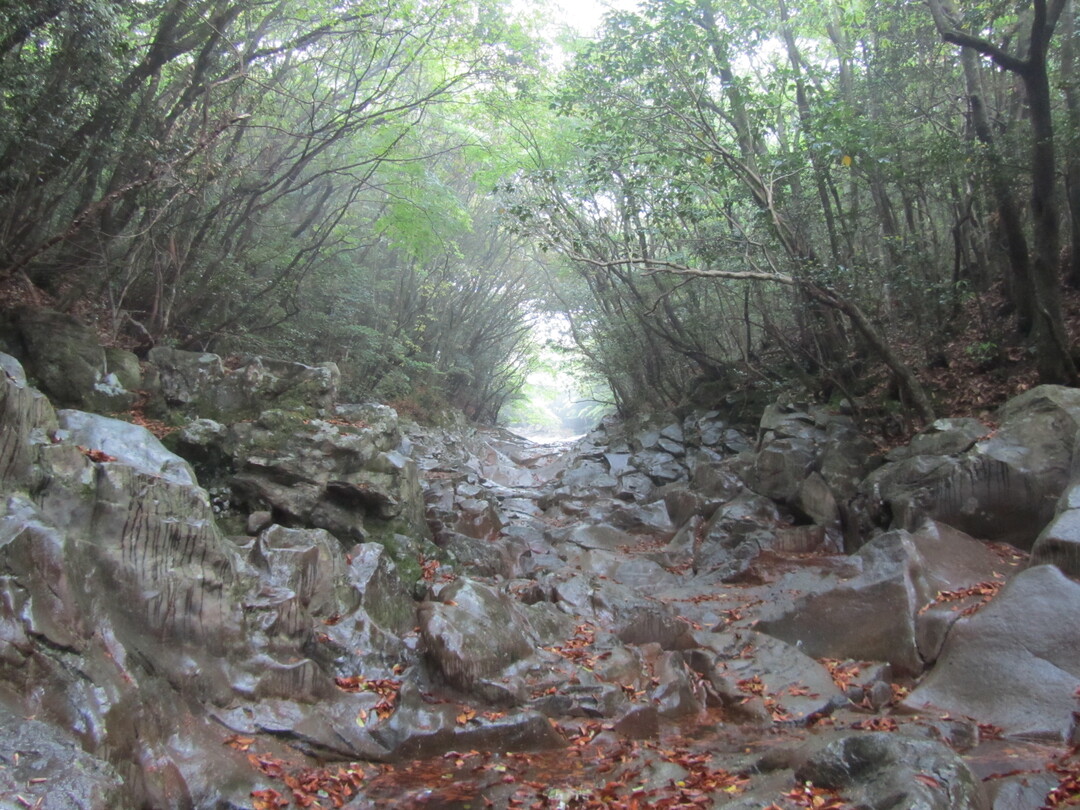 아쉽지만 동백길의 중간지점인 표고재배장을 기점으로 돌아간다. 왔던 길로 돌아가면 지루할 수 있지만 햇빛의 각도에 따라 숲은 또 다른 색깔의 옷으로 갈아입은 느낌이다. 푸르름이 더해지고 오면서 길을 찾느라 놓쳤던 주변 경치를 감상하는 여유로움까지 생긴다. 물고기를 닮은 바위, 뱀처럼 나무를 휘감아 오르는 넝쿨, 원숭이 얼굴을 한 나무줄기가 눈길을 끈다. 고막을 두드리는 빗소리를 음악 삼아 걸으며 황홀한 환상 숲길 여행을 마무리한다.